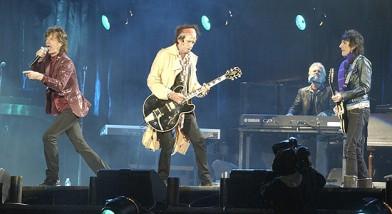The only song I had never heard them play before was "Streets of Love," and you folks out there in Stones Land are right about that one. It is a great live ballad, which Mick and the band build to considerable effect. Ronnie had the solo, one of the first of many fine guitar breaks for him during the evening. I can see why they want to keep this tour going; the songs on "A Bigger Bang" are very strong, and they have never played better. I think I heard them play "Little T & A" back in "81, but not since. And even though I heard "You Got the Silver" in Salt Lake City in '99, it is a gem and is most welcome. Ronnie has as much to do with this one as Keith, playing a georgous acoustic guitar part (is that slide?) which starkly frames Keith's heartfelt singing. Keith paced around Ronnie during his guitar break on that one. My wife was disappointed that Lisa Fischer's singing was not featured, as she was until recently on "The Night Time Is the Right Time," but she looked and sounded great, and worked hard up there. The one song I was hoping to hear was "Midnight Rambler," and I got my wish. We get Mick's harp playing with that one, as well as the ever shifting rhythm and dynamics that makes for a stellar live performance every time. Keith seeming fairly animated from my distant perch, smiling and moving to both sides of the stage fairly often. He did a nice job playing to the crowd on the left during "Tumbling Dice."