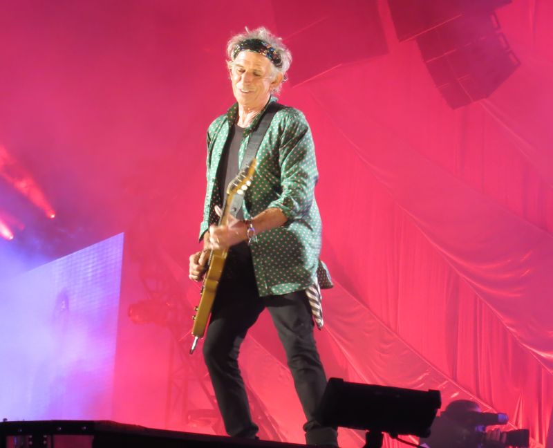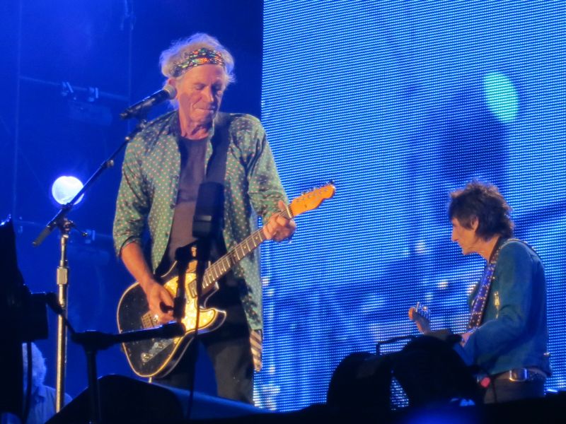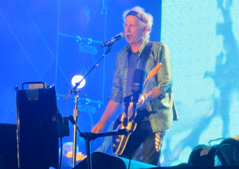 With no warm-up act, the Stones hit the stage at 8.50 following a new Sympathy drum intro video and you could tell immediately that they were ‘on fire’. We were standing at the front of general admission on Keith's side, which interestingly was slightly elevated and allowed an excellent view of the stage, video screens and runway. It seemed to take the sound crew a couple of numbers to balance the sound, but by TD all was good and I was amazed at the clarity of sound and the excellent acoustics in the Du Arena. Keith's guitar was up loud and it was very obvious how well he was playing and he appeared extremely focussed throughout the whole gig. His acoustic on Angie was beautiful, he nailed every opener and his solos were tight with none of the noodling I've seen on previous tours. The audience appeared to love his false start on Slipping Away, which added to the feel that they were watching a true live act, a contrast for those who experienced the awful Rihanna gig in the same venue last year.