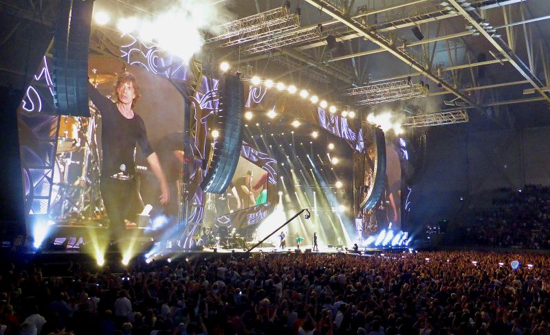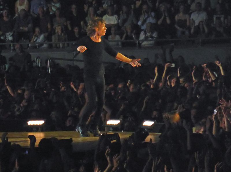 The first half of the show was like a hard working band with a crowd that was listening but not really getting into it. When Mick introduced the "By request" song he started to sing "Take On Me" by our local group A-ha, by saying it had too many high notes for him. Then we saw "Let's Spend The Night Together" up on the screen. Not a bad voting result!