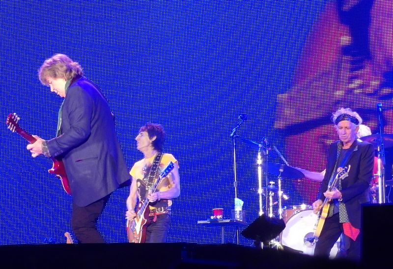 Lisa is walking to the center stage during "Gimme Shelter". The crowd is roaring. Signs of "Go Ronnie", "Keith is the Samurai" and plenty others are up in the air. luckily cameras are not allowed so we can see the bank and not thousands of hands doing youtube videos. Mick is soon down there with Lisa. Then Lisa is back, she is sneaking in like a cat, all over Keith, as usual at that moment in the song, but right then Keith is Keith and he is all so concentrated on playing his best part of the song. He is giving Lisa a quick smile but then he is back into deep concentration playing his riffs. I am impressed. The man in me would loose tyrack if Lisa was crawling all over me, I am sure, but Keith is here for us. And I think Lisa knows it. She is moving on through the stage towards Bernard.