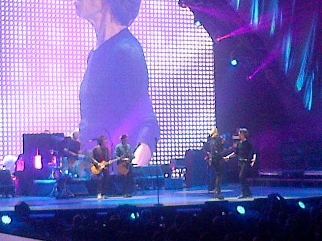 A little referrence to Mick fluffing that line at the last London show? They are clapping, because this time he got it right?