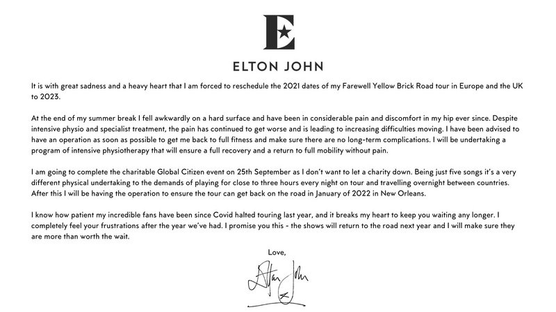 I mentioned on the Stones postponing thread about Elton. I saw him in Vancouver twice in Sept 2019 and each show was identical down to the between song talking. I'm sure the BC Place show will sell out since it's the only one for Western Canada and the US Northwest.