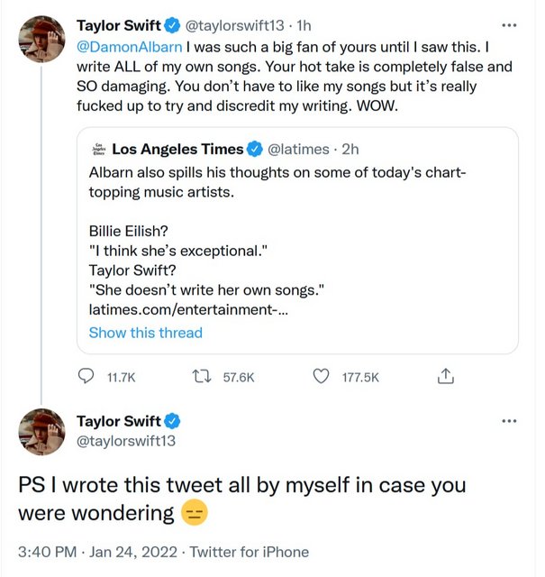Taylor Swift's response to Damon Albarn's Los Angeles Times interview: