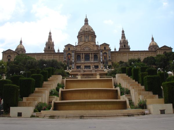 The dinner was set for the Sala Oval of the Museu Nacional d'Art de Catalunya - "MNAC". This is a large theatre with a floor and an upstars balcony style seating area that can take may be 500 people. Nobody ever used the seated area. The bank just used the floor of the hall, where 60-70 round tables seating 11 people each was all set for the gala dinner.