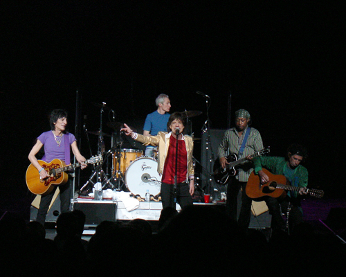 The opening note of Jumping Jack Flash start to blaze and the beautiful velvet curtains on the stage start to shiver. The Jag is in top shape, no doubt about it. Sitting in Row VV, I have a fantastic view and Mick looks younger than ever, it's quite spectacular. As for the sound, it's basically the best I've had at a rock concert (I guess Carnegie Hall doesn't count): no saturation, perfect mix, perfect balance � a dream. No transition, the opening note of It's Only Rock n' Roll. Chuck Berry is in the place. All the suits and ties start to shake. Corporate America is rocking! The Stones already won the battle. Solid version, classic, excellent riff by Keith; Ron looks pretty good and sober tonight.