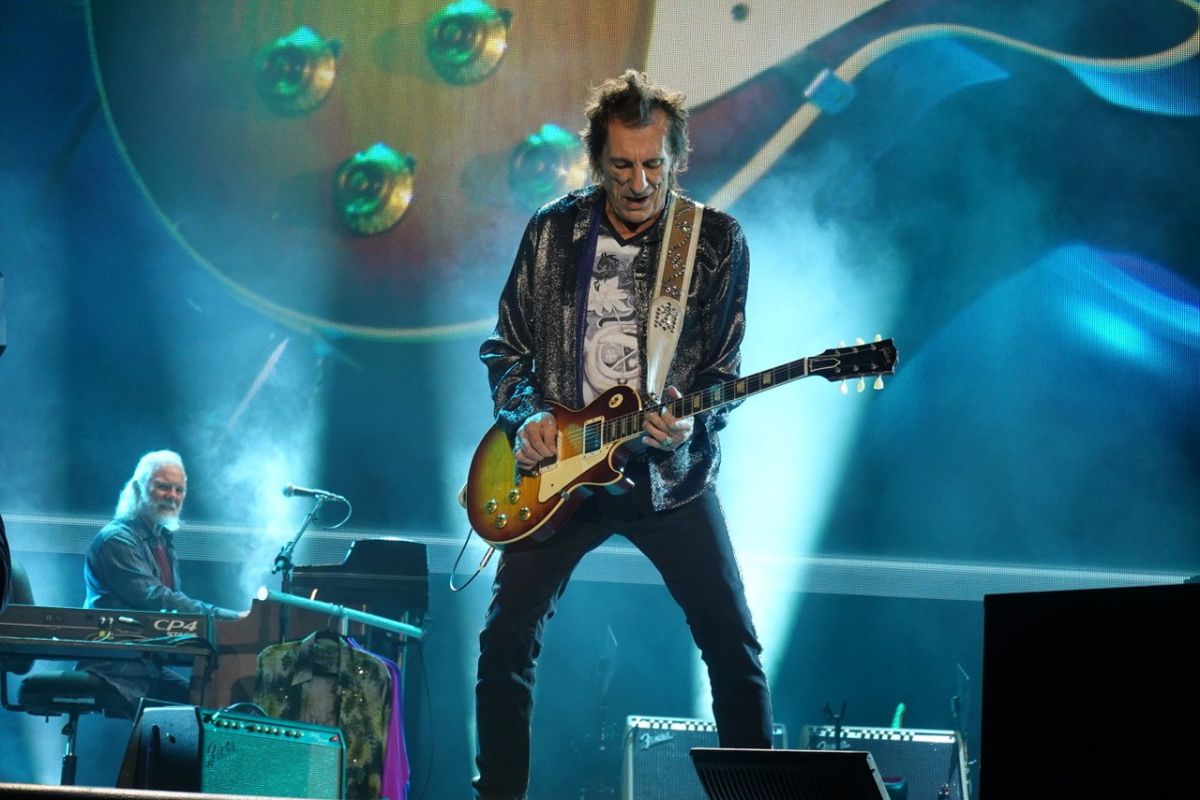 With Keith in top form, Ronnie doesn’t need to do all the heavy lifting these days. He interacted a lot with old friends in his surroundings, looking at them, smiling and throwing a few picks for them to catch.