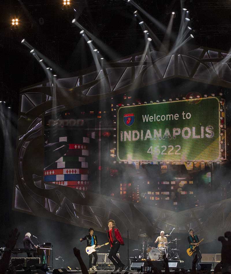 More interesting was what Mick did NOT say. He usually notes the first time that the Stones played in the city and thanks the fans for sticking around. Not this time in what was an implicit nod to to the Stones' relatively poor track record in Indianapolis.