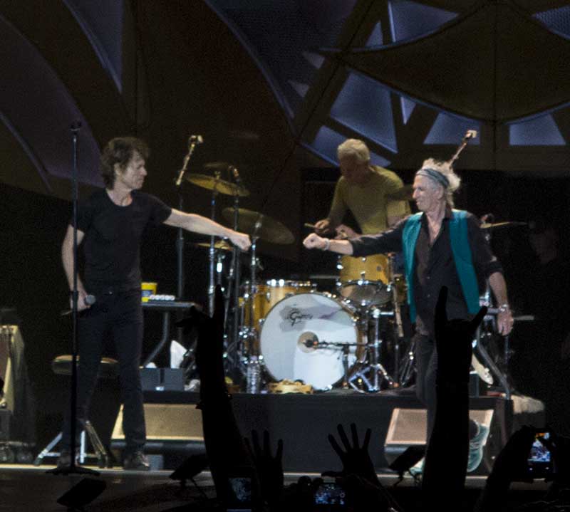 BTW. No one has mentioned that Keith fell down running back to the center of the stage. Hope he is OK. (There is a fan video posted at the Indianapolis Star.) This brings up my final point. Once, when Keith went out to the far end of the stage, Mick looked over, saw where he was, and had a very apparent concerned look on his face. He moved over in that direction until he seemed satisfied that his friend was OK. Also, at the Keith's little ad-lib at the end of YCAGWYW, Mick gave him a little fist bump.