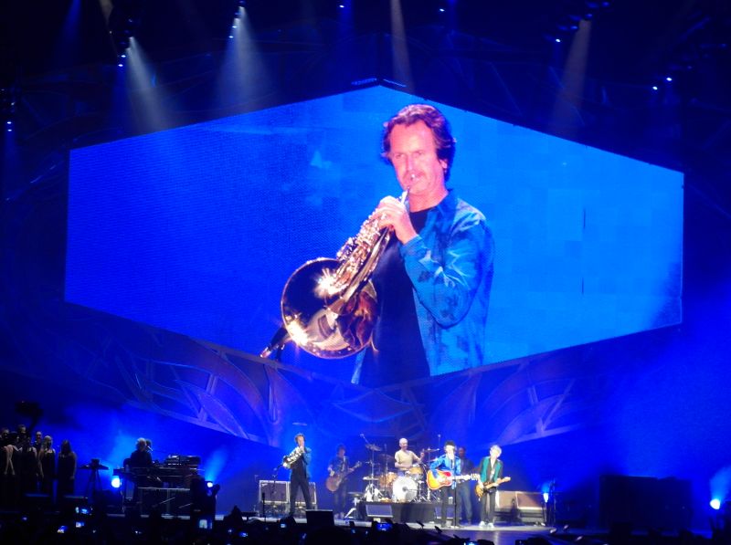 Keith was a bundle of energy, coming all the way out to the tip of the b-stage at the end of "Happy," and then running back to the main stage. However the song got off to a rough start as he appeared to want to play "Before They Make Me Run Again." Others may have a better analysis of his latest senior moment.