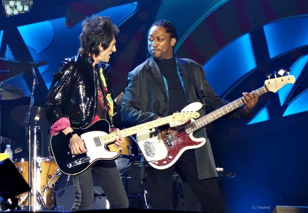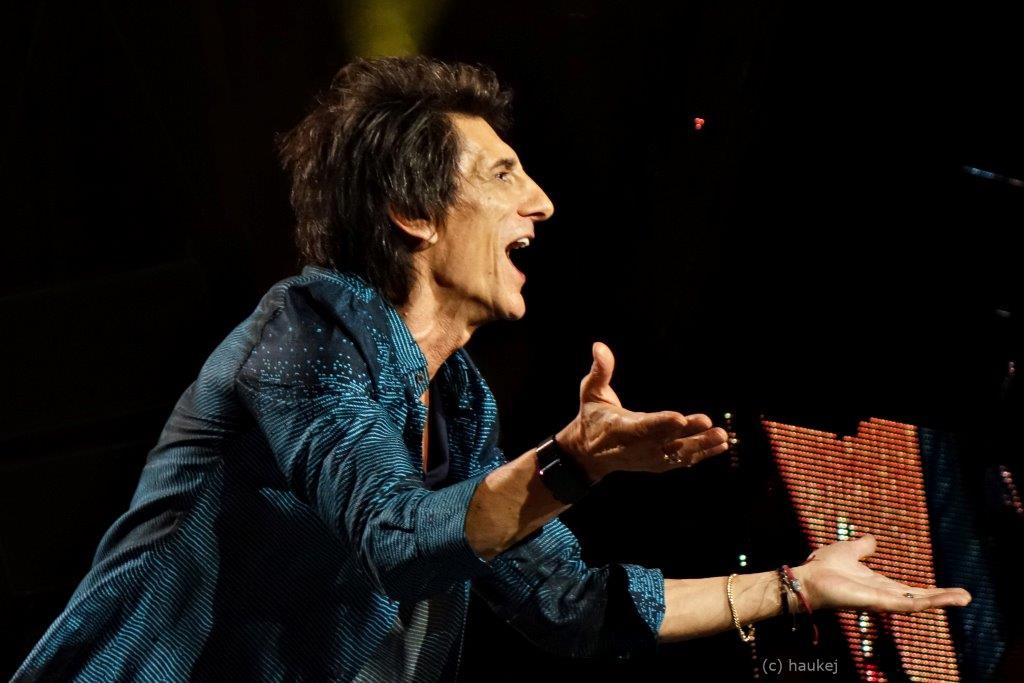 Again for me the two guitarists were excellent. Ronnie with more stunning riffs and soloing, occasionally with a bit of a screech. Keith prowling around the stage and down the catwalk, menacing eyes glaring, like a jaguar in the jungle, playing some very strong chords and riffs. The power from only 1 or 2 strings is immense. But it was their playing together that really impressed me. On “Silver”, it was a delicate acoustic duel; on “Control” the mix of wah-wah and clean guitar; on Angie they were joined by Chuck – two guitars and piano emulating the 43 year-old recording; surpassing most live outings of this number.