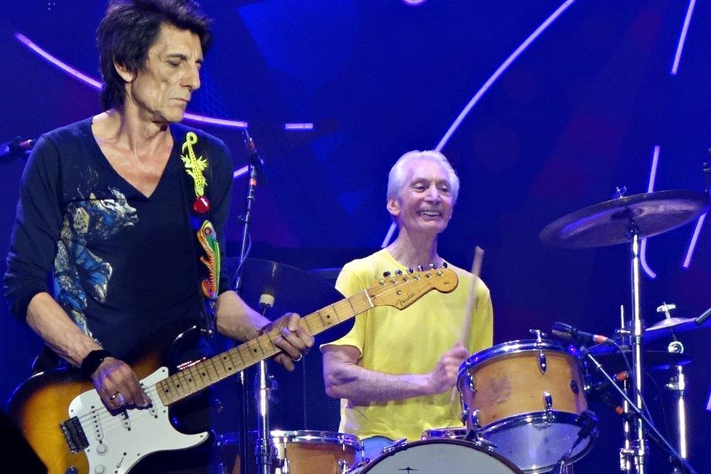 I spent some time watching Charlie. He sits there serene, head tilted slightly back as if looking down his nose at everyone – which he clearly isn’t in any derogatory sense. He nods at times, and then throws wicked glances, smiles, and facial gestures at some on-stage event – Mick dancing or Ronnie parading or Keith throwing a curved ball. It was warm, but Charlie looks and plays so cool: he plays like someone half his age.